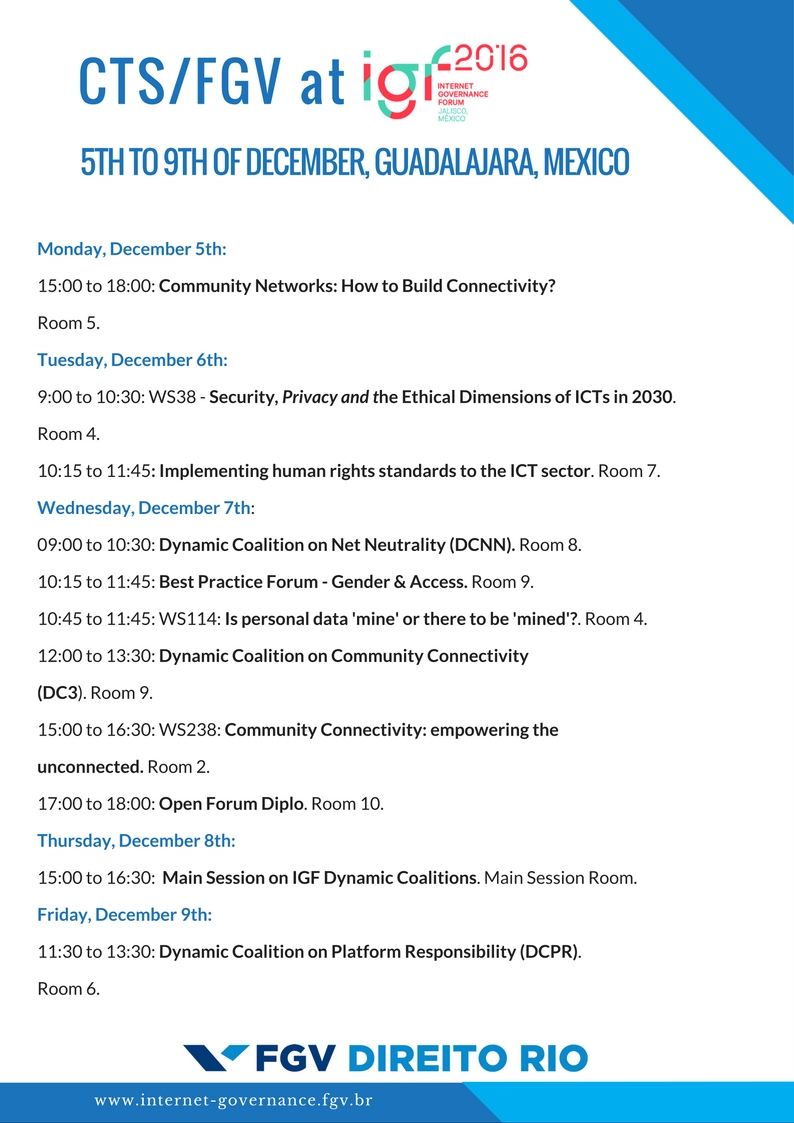 Dear all, (apologies for cross posting) The IGF is approaching fast and CTS/FGV would like to invite you to some sessions we are organising or participating to. Below, in attachment and here<http://internet-governance.fgv.br/%20%20> you can find more info on the sessions. Looking forward to seeing you at IGF! Best Luca [cid:image001.jpg@01D24A5C.3DF94A40] [FGV Direito Rio] Luca Belli, PhD Senior Researcher Head of Internet Governance @ FGV<http://internet-governance.fgv.br/> luca.belli@fgv.br<mailto:luca.belli@fgv.br> +55 21 3799 5763 [http://www.fgv.br/mailing/Direito_Rio/assinatura_email/Ondas.png]