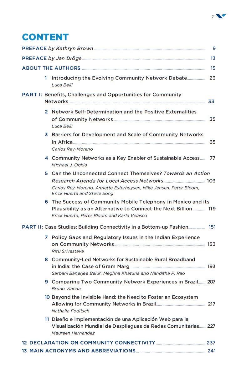 Dear all (apologies for cross posting) I would like to draw your attention on two books, including contributions from several members of this mailing list, that will be released next week at the United Nations Internet Governance Forum (IGF). 1) Platform Regulations: How Platforms are Regulated and How They Regulate Us.This book is the Official 2017 Outcome of the UN IGF Dynamic Coalition on Platform Responsibility (DCPR), which is a multistakeholder group fostering a cooperative analysis of online platforms’ responsibility to respect human rights, while putting forward solutions to protect platform-users’ rights. The book offers some responses to the diverse and raising challenges generated by the platformisation of our economy and, more generally, our society. The analyses featured in this book are drafted by 18 authors (see table of content 1, at the end of this email) includes prefaces by David Kaye, UN Special Rapporteur on the promotion and protection of the right to freedom of opinion and expression, and Julia Reda, Member of the European Parliament. The volume critically explores the human rights dimension of the digital platform debate, subsequently focusing on personal data protection and use, and finally suggesting innovative solutions for the new roles played by online platforms. It also includes the Recommendations on Terms of Service and Human Rights, which were elaborated through a multistakeholder participatory process, facilitated by the DCPR. The book’s flyer is available here<https://twitter.com/1lucabelli/status/940676442656067584>. Free copies of the volume will be availableon the 19th at 9 o’clock<http://sched.co/CTqv> and the ebook will be released in open access, under Creative Commons License. 2) Community Networks: the Internet by the People for the People.This volume explores the benefits of community networks, analysing case studies, focusing on the challenges and opportunities for these networks and putting forward concrete recommendations for their development.It features analyses by 16 authors (see table of content 2, at the end of this email), and prefaces by Kathy Brown, President and CEO of the Internet Society, and Jan Dröge, Director of the EU Commission Broadband Competence Offices Support Facility. The book is the official outcome of the IGF Dynamic Coalition on Community Connectivity (DC3), a multistakeholder group, fostering a cooperative analysis of the community network model, exploring how such networks may be used to improve connectivity while empowering Internet users. The volume also includes the updated version of the Declaration on Community Connectivity, which was elaborated through a multistakeholder participatory process, facilitated by the DC3. It will be presented and debated with the authors, on the 19th at 17:20<https://igf2017.sched.com/event/CTqx>. Free hard copies will be available, and the ebook will be released in open access, under Creative Commons License. The book’s flyer is available here<https://twitter.com/1lucabelli/status/940676442656067584>. While expressing my sincerest gratitude to all those who contribute to these books, I would like to invite you all to the books’ presentations, so that you can have your hard copies of the publications. For those who will not be able to be at the presentations, I will share the links to the books, right after the IGF. Lastly, should you be in Geneva next week, you might be interested in attending these sessions<https://igf2017.sched.com/ctsfgv> promoted by the Center for Technology and Society at FGV, dealing with topics such as intermediary liability<https://igf2017.sched.com/event/CSDC/council-of-europe-internet-intermediari...>, net neutrality<https://igf2017.sched.com/event/CTsC/dc-on-net-neutrality>, submarine interconnections<https://igf2017.sched.com/event/CTqs/the-future-of-internet-governance-subma...>, CyberBRICS<https://igf2017.sched.com/event/CTrY/cyberbrics-building-the-next-generation...>, platform economy<https://igf2017.sched.com/event/CTsG/beyond-the-next-gig-unpacking-developme...> and terrorism online<https://igf2017.sched.com/event/CTru/terrorism-freedom-v-security-ws164>. Looking forward to seeing you at the IGF and, please, feel free to circulate this email through your networks. Best regards Luca [cid:5a31230161f4d] [cid:5a31231dc98a5] ----------------------------------------------------------------------------------------------- Luca Belli, PhD Senior Researcher, Center for Technology & Society, FGV Rio de Janeiro Chercheur Associé, Centre de Droit Public Comparé, Université Paris 2 Head of Internet Governance at FGV internet-governance.fgv.br @1lucabelli ----------------------------------------------------------------------------------------------- CONFIDENTIALITY NOTICE This message, as well as any attached document, may contain information that is confidential and privileged and is intended only for the use of the addressee named above. If you are not the intended recipient, you are hereby notified that any disclosure, copying or distribution of this email or attached documents, or taking any action in reliance on the contents of this message or its attachments is strictly prohibited and may be unlawful. Please contact the sender if you believe you have received this email by mistake.