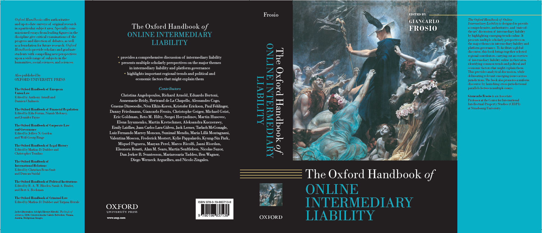 Cari tutti, Volevo annunciarvi la pubblicazione del volume "The Oxford Handbook of Online Intermediary Liability" da me curato. E' disponibile sul sito di Oxford University Press presso: https://global.oup.com/academic/product/oxford-handbook-of-online-intermedia... . Utilizzando il codice ALAUTHC4 si può ottenere uno sconto del 30%. Colgo questa occasione per ringraziare ancora tutti i co-autori (alcuni dei quali partecipano a questa lista)! Giancarlo [image: 9780198837138_FC.jpg] [image: book cover png 2.PNG]