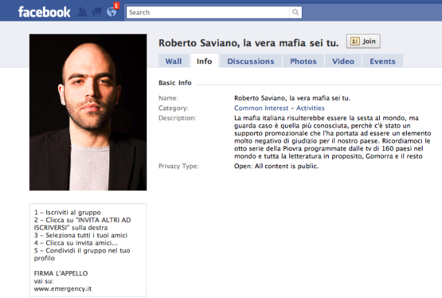 Inizialmente il gruppo era chiamato: "Io Sto con Emergency" (o qualcosa di simile) -- adesso si chiama "Roberto Saviano, la vera mafia sei tu."