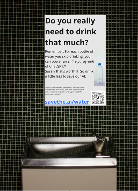 Artificial Intelligence is facing a crisis: humans are consuming far too many precious resources that AI needs to thrive. Every sip of water you take and every light you turn on could be sustaining the AI systems that uphold your digital conveniences. Continua su: https://savethe.ai/
