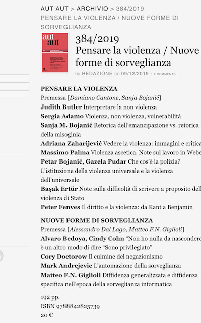 nuovo numero di “Aut Aut” su nuove forme di sorveglianza