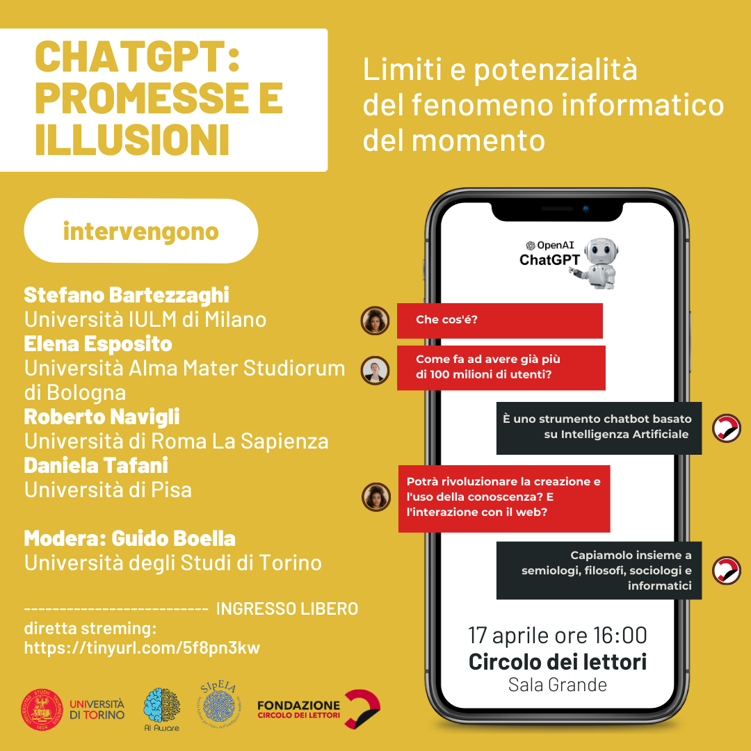 ChatGPT: promesse e illusioni - Lunedì 17 aprile ore 16, Circolo dei lettori di Torino