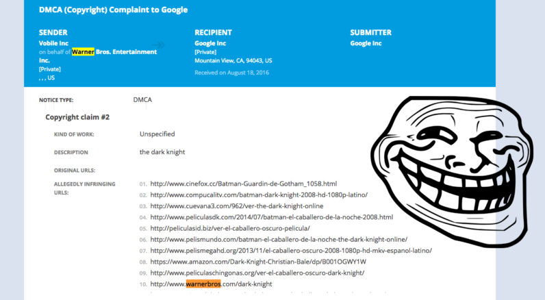 Warner Bros. shoots itself in the foot as it flags its own website for piracy