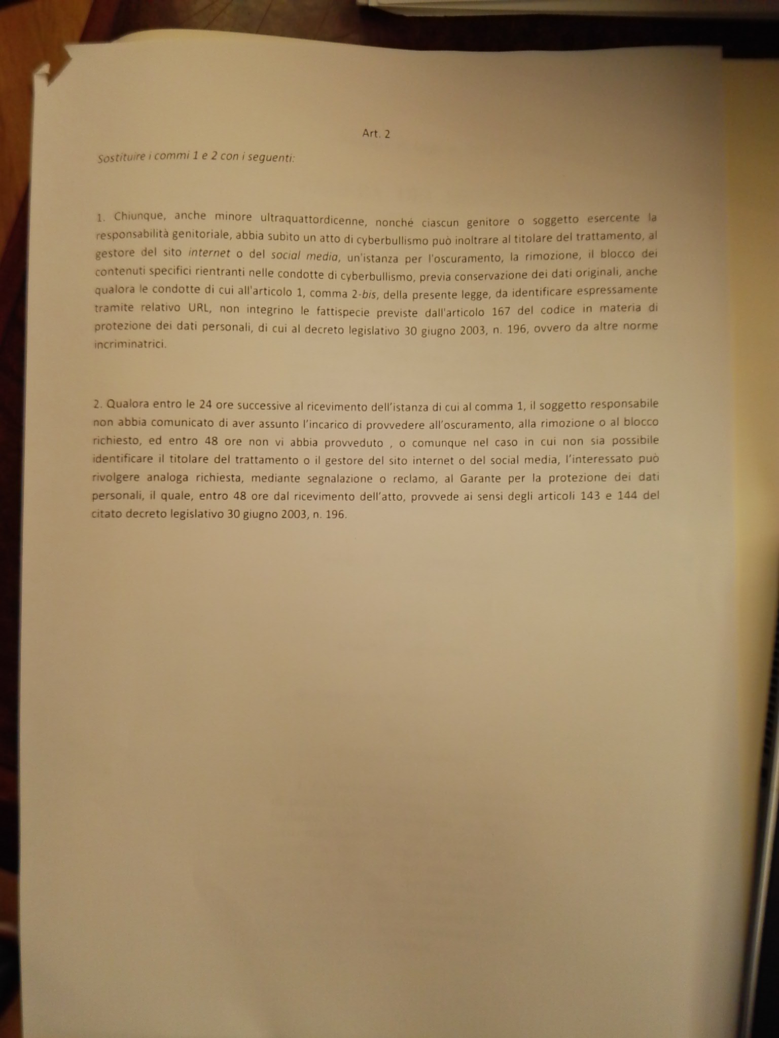 Ciao a tutti, solo un aggiornamento su PDL cyberbullismo, che so che in questo forum si e' molto attenti se non sbaglio a ricapitolare gli emendamenti approvati oggi... 2 bis. Ai fini della presente legge, con il termine «cyberbullismo» si intende qualunque comportamento o atto rientrante fra quelli indicati al comma 2 e perpetrato attraverso l'utilizzo della rete telefonica, della rete internet, della messaggistica istantanea, di social network o altre piattaforme telematiche. Per cyberbullismo si intendono, inoltre, la realizzazione, la pubblicazione e la diffusione on line attraverso la rete internet, chat-room, blog o forum, di immagini, registrazioni audio o video o altri contenuti multimediali effettuate allo scopo di offendere l'onore, il decoro e la reputazione di una o più vittime, nonché il furto di identità e la sostituzione di persona operate mediante mezzi informatici e rete telematica al fine di acquisire e manipolare dati personali, nonché pubblicare informazioni lesive dell'onore, del decoro e della reputazione della vittima. e il comma 2 dice 2. Ai fini della presente legge, con il termine «bullismo» si intende l'aggressione o la molestia reiterate, da parte di una singola persona o di un gruppo di persone, a danno di una o più vittime percepite come più vulnerabili al fine di provocare in esse sentimenti di ansia, timore, o di isolamento ed emarginazione, attraverso atti o comportamenti vessatori, pressioni e violenze fisiche o psicologiche, istigazione al suicidio e all'autolesionismo, minacce o ricatti, furti o danneggiamenti, offese o derisioni aventi per oggetto la razza, la lingua, la religione, l'orientamento sessuale, la disabilita', l'aspetto fisico, le condizioni personali e sociali della vittima poi c'e' la procedura di takedown che sara' discussa plausibilmente martedi, e che verra' approvata cosi' com'e' (allegata) in quanto blindata dalla commissione bilancio e quindi non emendabile. (si dovrebe tornare in commissione affari sociali, modificare l'emendamento, andare in commissione bilancio per un OK prima di tornare in aula) la procedura e' rivolta ai "gestori del sito internet" dove ...per «gestore del sito internet» si intende il prestatore di servizi della società dell'informazione, diverso da quelli di cui agli articoli 14, 15 e 16 del decreto legislativo 9 aprile 2003, n. 70, che, sulla rete internet, cura la gestione di un sito in cui si possono riscontrare le condotte di cui al comma.. ho cercato di spiegare che in sostanza si fa un processo che, come effetto collaterale, consente di chiedere di cancellare qualunque cosa a chiunque, esponendo chi non ottempera entro 24-48 ore al rischio (potenziale) di una sanzione dal garante fino a 180K mi sono dimenticato di dire che nel rimuovere contenuti che possono essere oggetto di reato, come da procedura allegata, e' richiesto che il "gestore" conservi i dati originali. e si attrezzi per farlo entro 30 giorni. chiedo conferma a chi ne sa piu' di me: se io rimuovo dei contenuti che possono essere oggetto di reato e ne devo conservare una copia, immagino che ci siano dei requisiti per come tale copia debba essere fatta e conservata, o sbaglio ? ciao, s. -- meet me at http://me.quintarelli.it blog: http://blog.quintarelli.it web clips: http://clips.quintarelli.it tumblr: http://stefanoquintarelli.tumblr.com