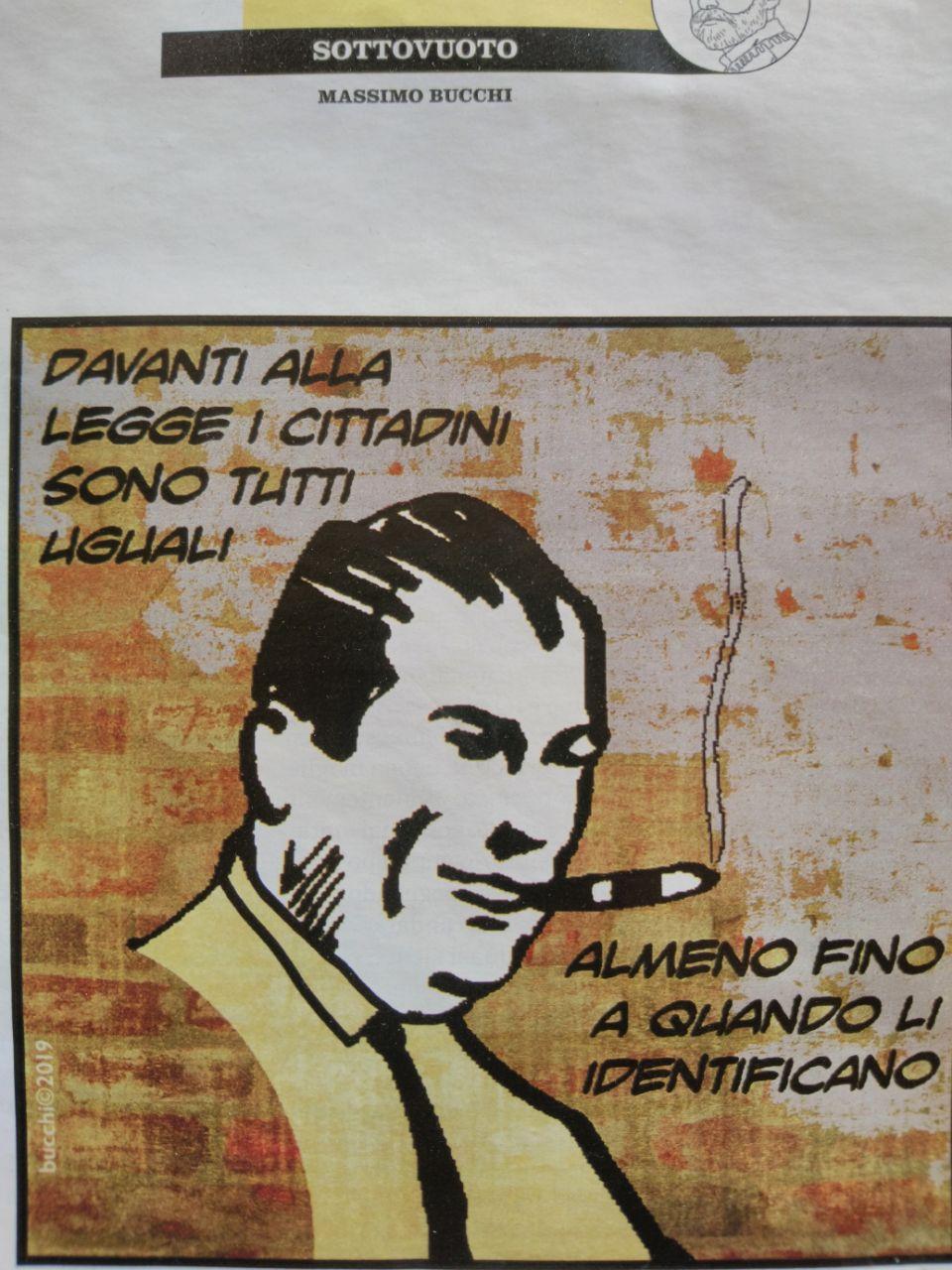allego vignetta di Massimo Bucchi Da "il Venerdi" 25 ottobre 2019: "Davanti alla legge i cittadini sono tutti uguali/ almeno fino a qundo li identificano" Alberto On 08/05/2020 14:10, Giovanni Biscuolo wrote: